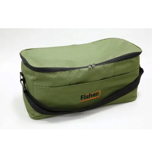Сумка Fisher - призначена для комфортного перевезення снастей і підгодовування. В сумки три відділення і знімні перегородки , має наплічний ремінь для зручного транспортування. Оснащена високоякісною фурнітурою і зносостійким матеріалом ОКСФОРД Д 600 ПВХ. Купуючи у нас сумку ви можете бути впевнені , що це оригінальний товар від виробника .