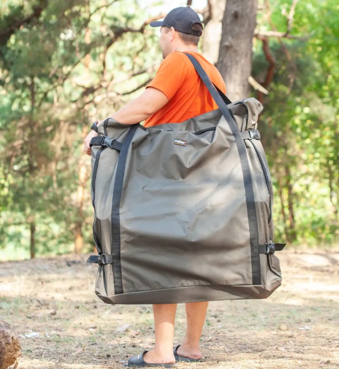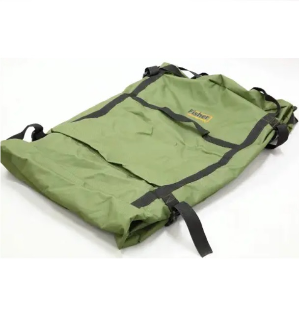 Оригінальний короповий чохол Fisher-призначений для зберігання і транспортування коропової меблів. Чохол має додатковий кишеню і регулированную застібку з боків. Встановлена високоякісна фурнітура,двостороння змійка №-8. Прошивши виконаний з двошаровою армованої нитки. Має наплічний ремінь для транспортування 40мм. Ручки 30мм вшиті по всій висоті чохла ,що забезпечують надійність і міцність при транспортування . За рахунок бічних застібок дозволяє вмістити навіть найбільші розміри розкладачок