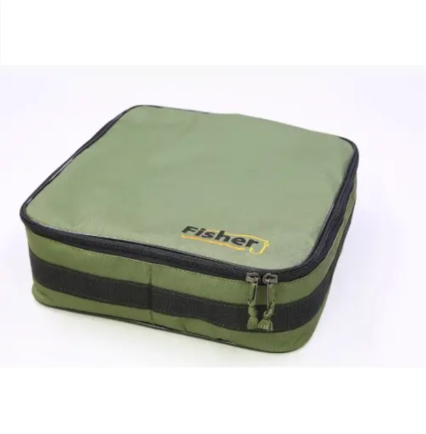 Чохол для 4 котушок від компанії Fisher захистить ваші котушки під час зберігання та транспортування. кань стійка до пошкоджень ОКСФОРД-Д-600 з ПВХ, в стінках чохла стоїть 8-мм ущільнювач. Особливості: Складається з 4 центральних відділів для зберігання котушок розміром шпулі до 10000 Перегородки знімні на липучках Також на кришці є кишеня на блискавці для зберігання дрібниць і аксесуарів Дає змогу зберегти котушки від вологи, пилу та пошкоджень Для зручності експлуатації закривається подвійна змійка