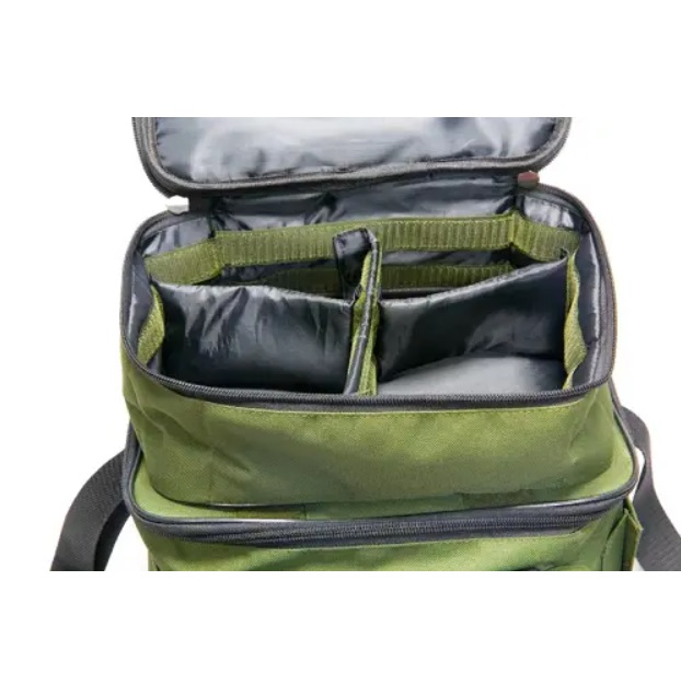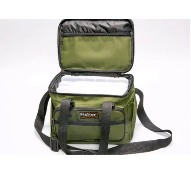 Універсальна модель, створена для перенесення пластикових коробок для приманок і котушок. Крім основного відділення сумка має ще 4 кишені. У комплекті із сумкою йде чохол для зберігання спінінгових котушок на 4 відсіки. Стінки ущільнені пінополіетиленом дають змогу зберегти котушки в збереженні. Чохол має 3 регульовані перегородки, що дають змогу налаштувати цвяхи під зручний розмір і ручку для перенесення. Чохол підійде також для зберігання грузил, бойлів, годівниць і ін. Кріпиться до кришки сумки за допомогою 2 липучок, водночас ручка для перенесення регулюється під потрібну довжину. Використовувати чохол і сумку можна як разом, так і окремо. Додатково, сумка може комплектуватися п'ятьма коробками: (250 мм *188 мм* 38 мм) 4 шт (216 мм *121 мм *34 мм) 1 шт. Звертаємо вашу увагу на те, що ці коробки не входять до комплекту сумки Розміри сумки: Довжина — 27 см Висота — 21 см Ширина — 19 см Розміри чохла під котушки: Довжина — 27 см Висота — 9,5 см Ширина — 17,5 см Тканина Оксфорд Д-600 з ПВХ покриттям