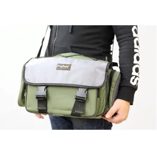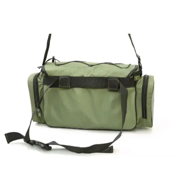 Сумка виготовлена з міцної, зносостійкої тканини Оксфорд Д 600 з ПВХ-покриттям. Сумка має основне відділення, доступ до якого відкидається клапаном і відчиненням блискавки. Також є три кишені передньої й дві бічні кишені на блискавці. Зі зворотного боку є ремінь для того, щоб цю сумку носити на поясі.Так само є плечовий ремінь із можливістю регулювання. На відкидному клапані є гумка, яка дає змогу фіксувати під нею предмети одягу рукавички, сплач тощо. Основне відділення дає змогу розмістити дві коробки. Розмір: 38 х 25см, глибина 12 см Передня кишеня: 29 х 19 см, глубина 8 см Бічні кишені: 9 х 17 см, глубина 5 см