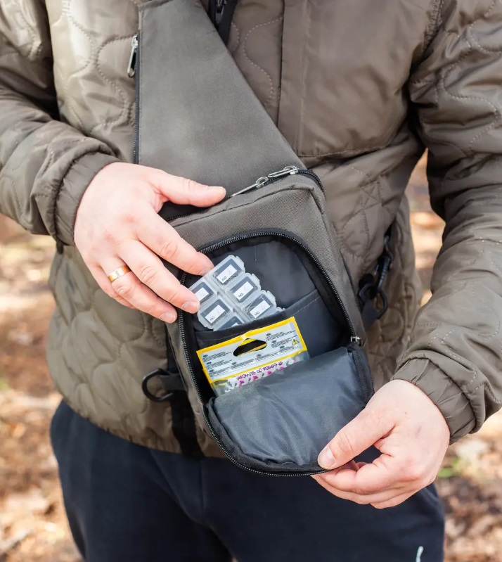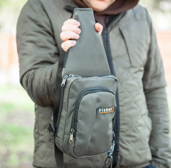 Сумка для риболовлі через плече Fisher (К-047). Сумка Fisher — ідеально підійде для ходової риболовлі, полювання, велопрогулянок, а також підійде для носіння документів. Сумка виготовлена зі зносостійкого матеріалу оксфорд 600 з пвх просоченням. Ремінь регулюється, можна змінити висоту сумки. Сумка зручна та практична у використанні.