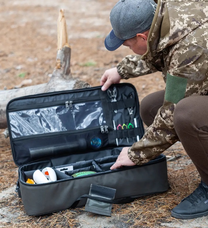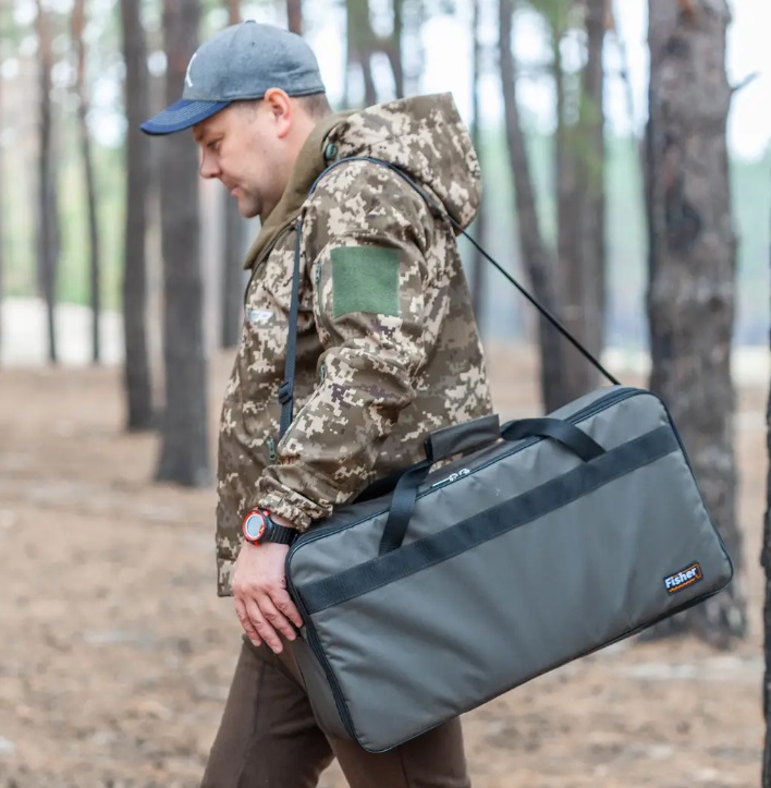 Сумка для риболовлі універсальна від компанії -Fisher, призначена для зберігання і транспортування спорядження для всіх видів риболовлі: фідер,карпфішенг, посинінг, поплавна ловля і т.д. Сумка достатньо цілісна і в той же час дуже компактна. Сумка зроблена у вигляді жорсткого кофра, у кришці і в дні сумки вставлений жорсткий ущільнювач який забезпечує додаткову гнучкість конструкції + щільний ущільнювач по колу, перегороди тверді Що не дозволить сумці переміщатися в різні сторони, пересадки можна пересувати на власний розсуд вони зйомні на липучках. На внутрішній стороні кришки розташовані прозорі кишені для мелочів і додаткові кріплення для рибальських інструментів У внутрішньому відділенні можна переставляти перегородки на свій власний розсуд, можна вкласти коробку,сигналізатори поклівки,рушу,ракети,спомби,держувач для фідера, і навіть котушки Сумка оснащена подвійною ручкою і плечовим ременем з прорізаною накладкою для комфортного транспортування двосторонній блиск Для матеріалу використовується рюкзачно - сумна тканина Оксфорд Д-600 з пвх покриттям.Дуже практична в зносі і не приготуючи в догляді тканину. Розмір:60 * 30 * 12 см