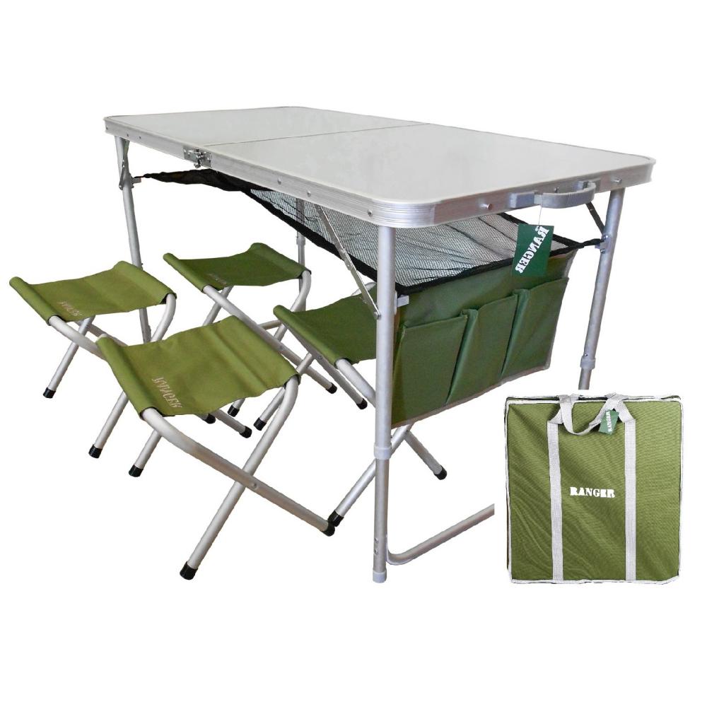 Складаний пікніковий стіл з чотирма табуретками для сім'ї або великої компанії - просто ідеальне рішення саме для Вас. За столом дуже легко розміститься велика компанія з 8 чоловік. Стіл і стільці дуже просто і швидко розкладаються і складаються. З цим впорається навіть дитина.
