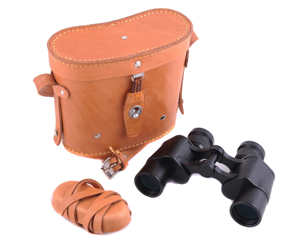 Ремінець для бінокля із пристебнутою до нього шкіряною кришкою на окуляри