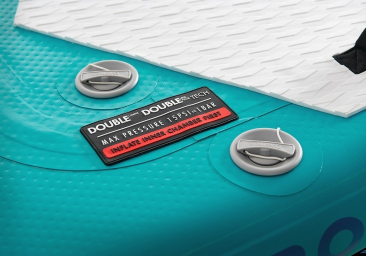 Додаткова внутрішня камера з додатковими повітряними стовпами утворює бічну стінку в зоні стояння, що робить жорстку дошку на 30%. Всі повітряні SUP AZTRON оснащені індивідуальними подвійними клапанами високого тиску преміум-класу, які розроблені виключно для двокамерних SUP. Маючи менший діаметр, ніж звичайний клапан, наш клапан допомагає запобігти пошкодженням, викликаним надмірним накачуванням.