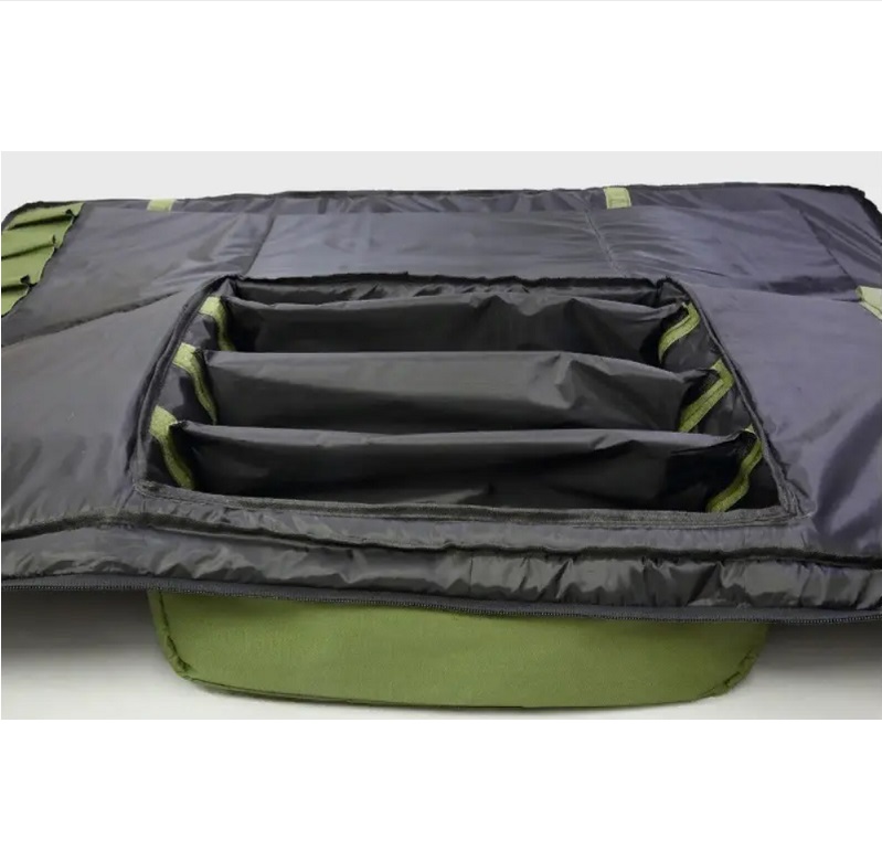 Чохол для вудлищ від компанії Fisher 140 см. Напівжорсткий чохол для 8 коропових вудлищ за типом холдал (Holdal) призначений для зберігання і транспортування 4 вудлищ із котушками й 4 вудлищ без котушок. Виготовлений з високоякісного, довгастого, вологостійкого та водночас еластичного матеріалу ОКСФОРД-Д — 600 з ПВХ. Підкладка — Д-75. Особливістю цієї моделі є можливість безпечного зберігання і транспортування вудлищ із котушками.Для дбайливого зберігання всередині чохла передбачені м'які перегородки та ніші для котушок, які виготовлені з міцної пропиленої підкладки, що повністю захистить ваші снасті від пошкоджень. Також є зовнішня кишеня на блискавці, яка може помістити парасольку, підсак, підсадку, стійки під вудлища та інші аксесуари. Кріплення на липучках надійно фіксують вудлище всередині. Для транспортування слугує ручка та плечовий ремінь. Особливості: Блискавка використовується -10 мм Посилений бігунок — 10 мм Блискавки працюють дуже плавно Ущільнювач — 8 мм Високоякісна фурнітура Розміри чохла спеціально призначені для зручного розміщення всіх різновидів 3 складових вудлищ 12 або 13 ft (3,6 м і 3,9 м) Довжина — 140 см