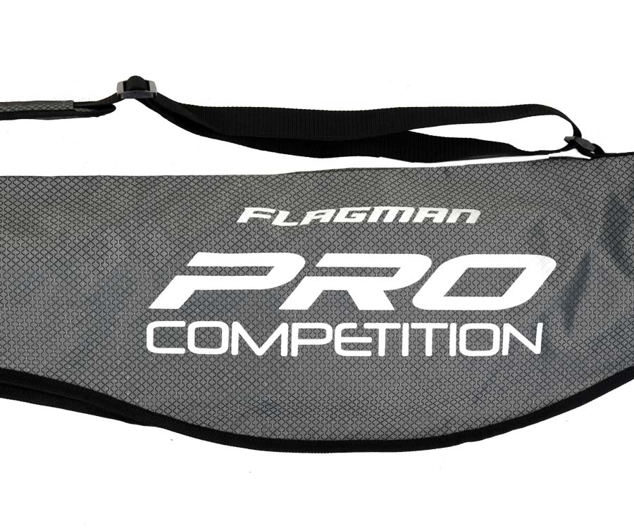 Flagman Pro Competition Rod Bag – м'який чохол для транспортування і зберігання повністю спорядженого вудлища зі встановленою на ньому котушкою. З внутрішньої сторони чохол Flagman Pro Competition Rod Bag має м'яку підкладку, яка запобігає пошкодженню вмісту під час транспортування. Обшивку виконано з міцного зносостійкого водонепроникного матеріалу Oxford 600D. Основне відділення закривається на двосторонню блискавку. З тильного боку розміщено кишеню та фіксатор-липучку, які слугують для закріплення ззовні чохла запасного вудлища або ручки підсака. Чохол Flagman Pro Competition Rod Bag обладнано регульованим наплічним ременем із м'якою накладкою для перенесення.