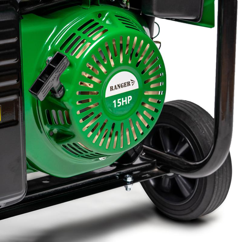 Бензиновий генератор RANGER Tiger 8500 працює від одноциліндрового, 4-тактного двигуна з повітряним охолодженням з мідною обмоткою. Комплектується 2 розетками 32А. Передбачений датчик рівня бензину. Комплектується ручками та колесами для зручного транспортування.
