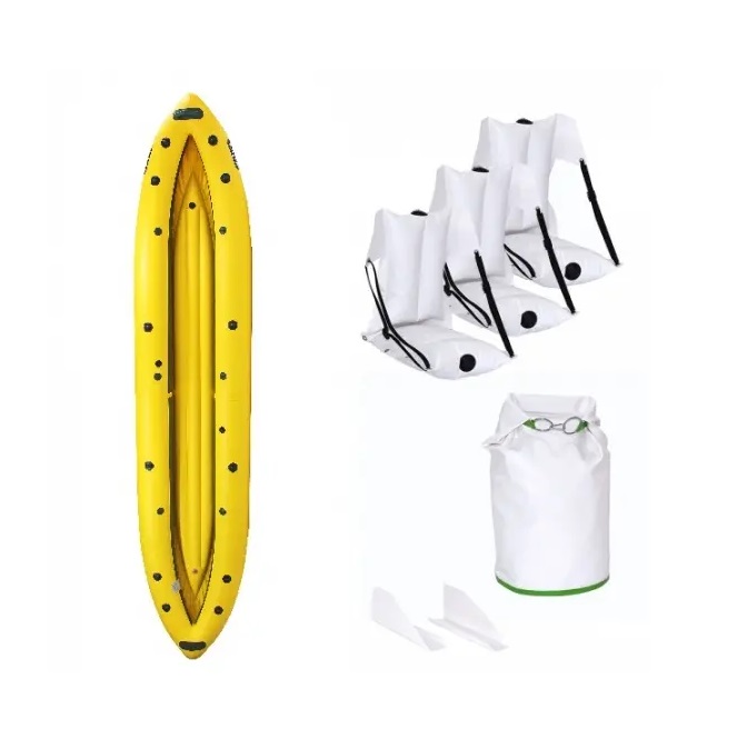 Комплектація: Надувна байдарка, 3 надувні крісла, ножний насос-жаба на 6 л, сумка для перенесення, гермомішок на 40 літрів Ладья ЛГ-40, пластикові курсові стабілізатори, ремкомплект, документи
