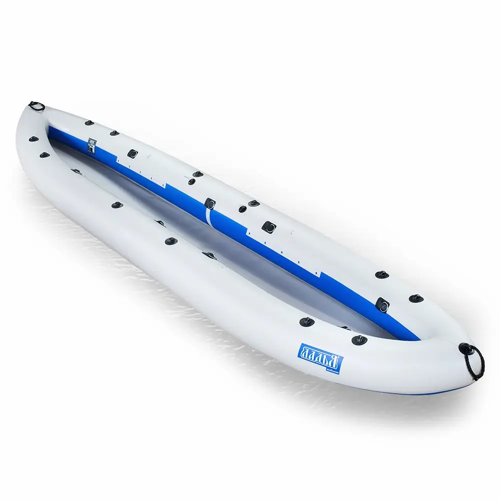 Розроблена спеціально для рибалок надувна байдарка Ладья Рибацька призначена для гладкої води та комфортної риболовлі на спокійних водоймищах. У базовій комплектації має натяжне дно, яке можна доукомплектувати вкладним надувним днищем.