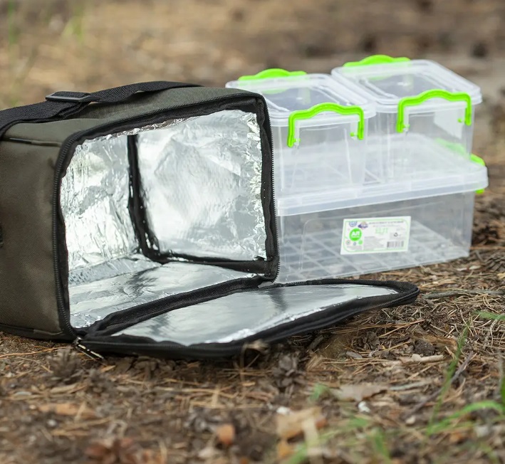 Невелика термосумка з термоізоляційним матеріалом, призначена для тривалого та безпечного зберігання швидкопсувальних продуктів Сумка комплектується трьома боксами Розмір: Об'єм 9 л. Висота — 18 см, ширина — 18 см, довжина — 28 см Її габарити просто ідеально підходять для риболовлі на легці, місткі контейнери різних форм легко адаптуються як під приманки, так і під продукти для пікніка